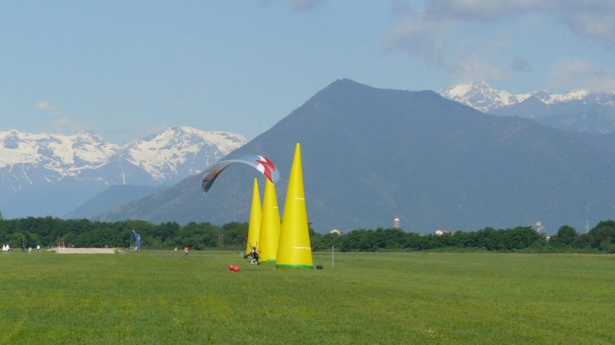 W Turynie na OLIMPIADZIE najlepiej przygotowanymi zawodnikami byli Grzesiek Krzyzanowski i Tomek Kudaszewicz , a najlepiej wypadł Piotrek Trzyński. Szczególy były następujące: Ja dwa tygodnie przed wyjazdem do Turynu – po powrocie z treningu u Adama Paski, na którym wykręcałem najlepsze czasy było to 36 s na koniczynie na pylonach— złamałem rękę latając w Białymstoku –MASAKRA – przez dwa tygodnie myślałem tylko o tym jak do gipsu podczepić sterówkę, gaz musiałem przełożyć do drugiej ręki. przeróbki pozwoliły pojechać do Włoch i zapowiadało się że będzie wszystko dobrze. Pierwszy trening i jedyny miał mi dać szansę wypróbowania zaczepu sterówki do gipsu i powrotu do najlepszej formy. Włosi wyznaczyli godzinę startów na 9 rano – super- ale ich szybkość działania opóźniła trening i wystartowaliśmy ok 12– była bardzo silna termika. Startuję i okazuje się że jest dobrze będę mógł walczyć o pudło muszę tylko uważać w trakcie podpinania do sprzętu ponieważ nie mam możliwości poprawienia się lewa ręka która jest przyczepiona mocnym rzepem do sterówki na stałe. Wszyscy zawodnicy lecą bardzo spokojnie uważając na bezpieczeństwo ale ja muszę potrenować i w połowie treningu na pełnej prędkości 2 m nad ziemią ostra terma i rotor za pylonem zakłada mi klapę która sprowadza mnie na ziemię — walę w glebę , rozbijam doszczętnie napęd i wykręcam kolejne dwa palce mały w prawej ręce i kciuk pod gipsem w lewe, myślę że to już koniec. Na szczęście Grzesiek pożycza mi swój zapasowy napęd i razem z Piotrkiem (Czarny) składają go do kupy i po chwili wsadzają mnie w nowy sprzęt- więcej treningów już nie będzie. Teraz to ja już nawet nie dam radę sam uruchomić silnika. Ciekawostka kolejne utrudnienia to: