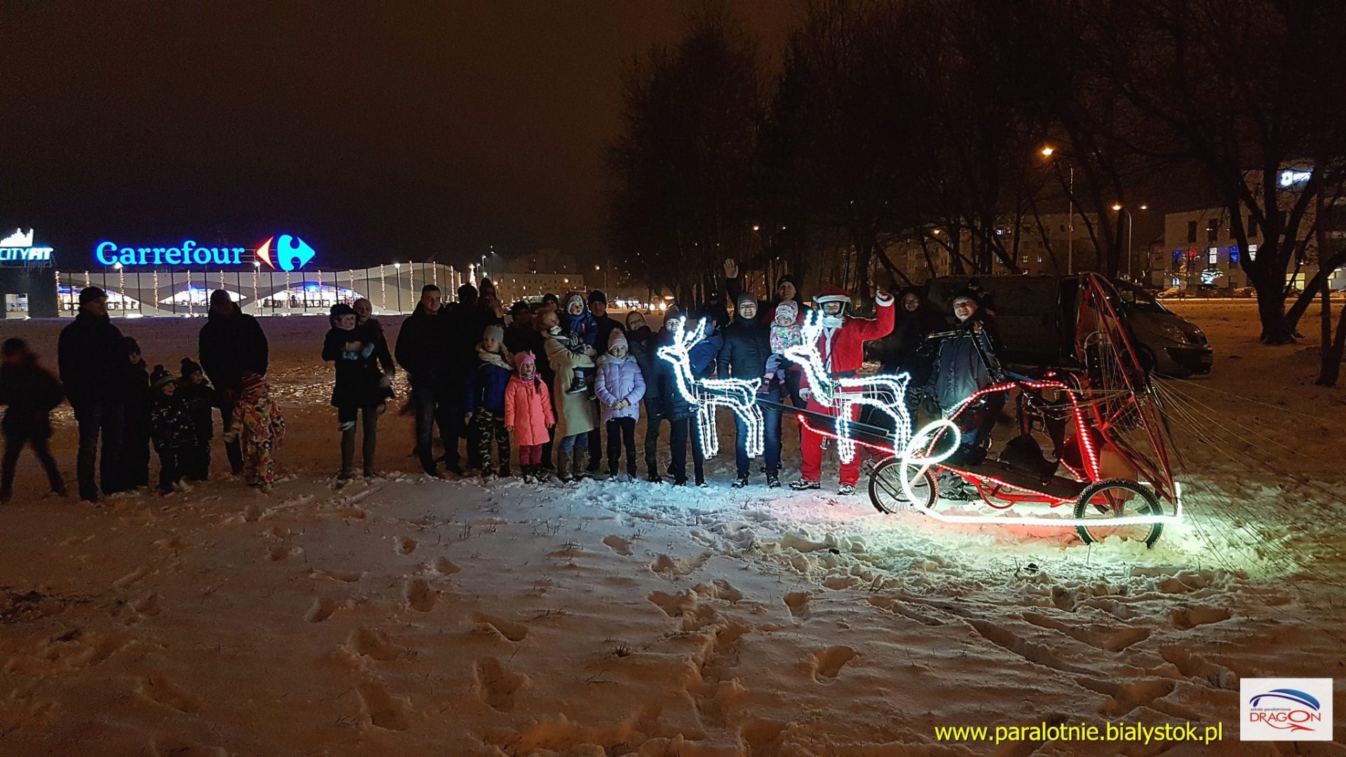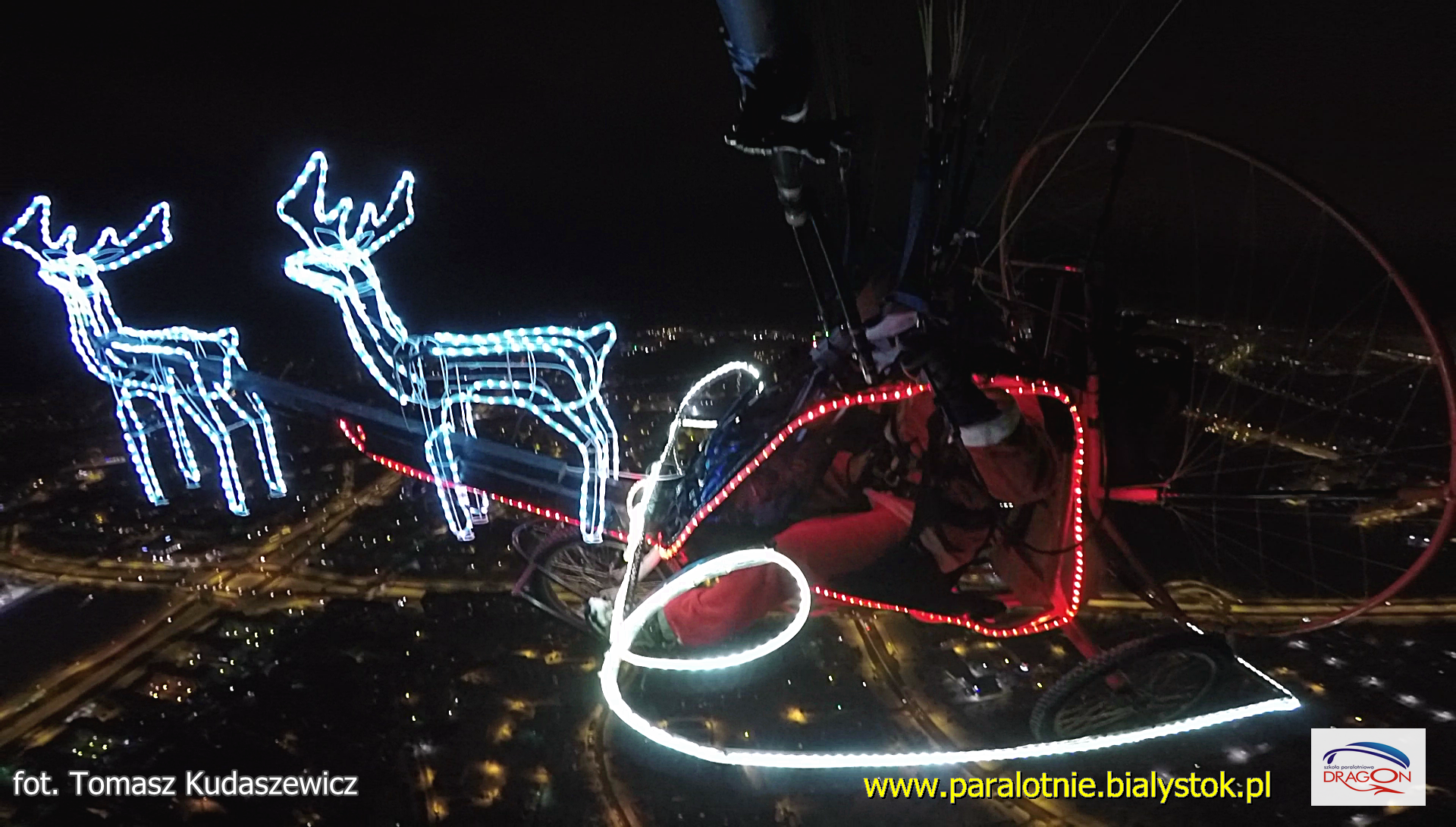 Renifery, sanie i Mikołaj w nocy na Białostockim niebie – konstruując świecące sanie wiedziałem że to będzie wspaniałe dla oglądających, a teraz jest również i dla mnie. Wczoraj odpaliłem renifery i wznieśliśmy się w niebo, a dzisiaj otrzymuję od was setki miłych opinii i podziękowań za spektakl. Jestem wzruszony i wdzięczny za wspaniałe komentarze.