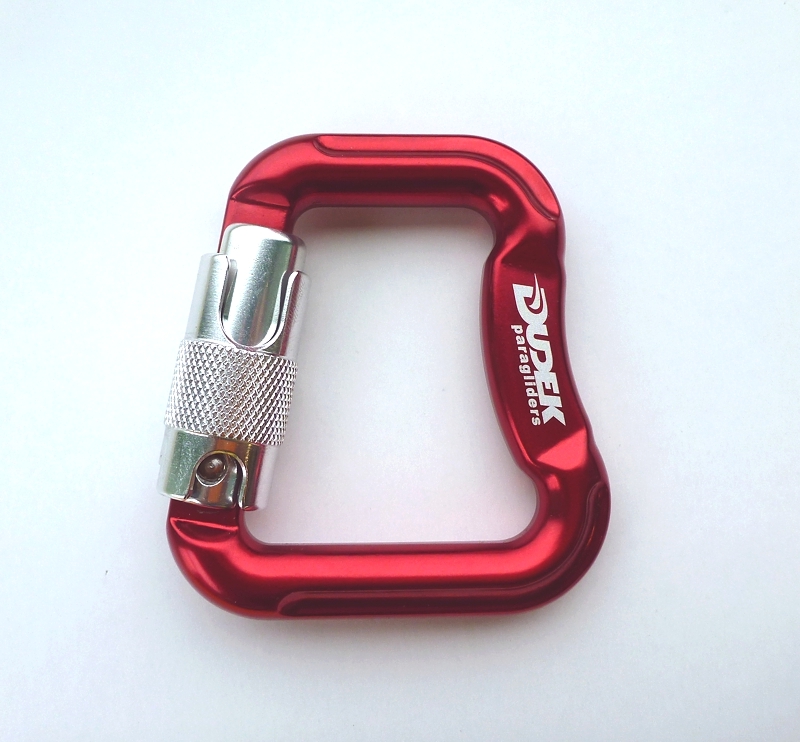Szerokość wewnętrzna – 45 mm od strony uprzęży. Blokada zapięcia – otwierana przez pociągnięcie w dół i wykonanie 1/4 obrotu.