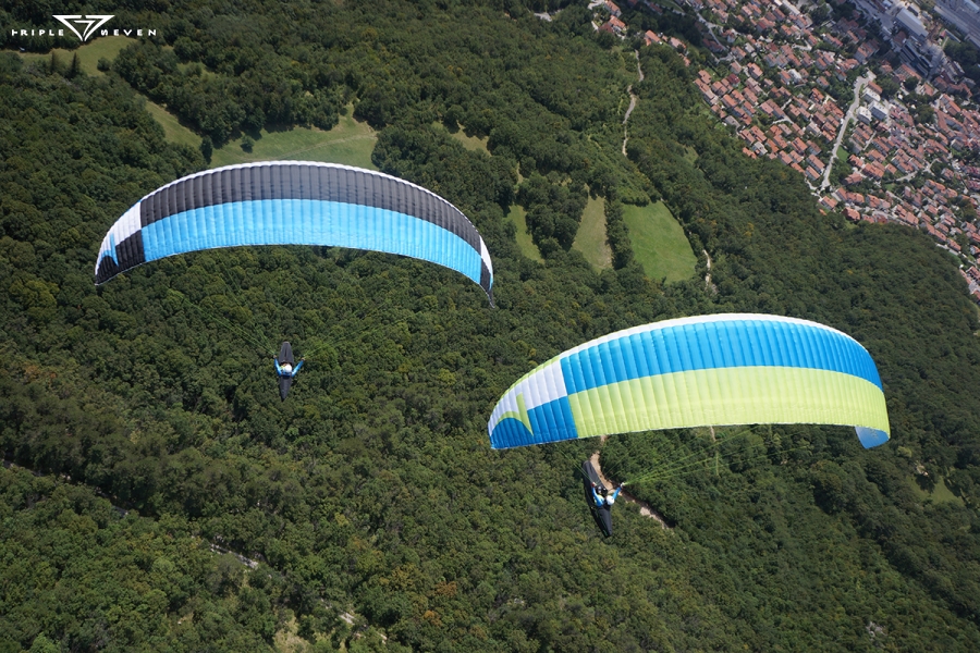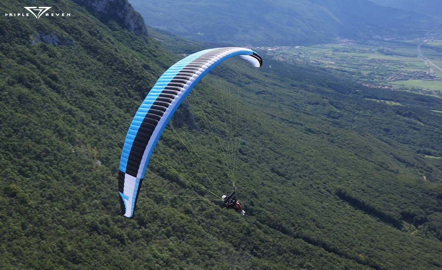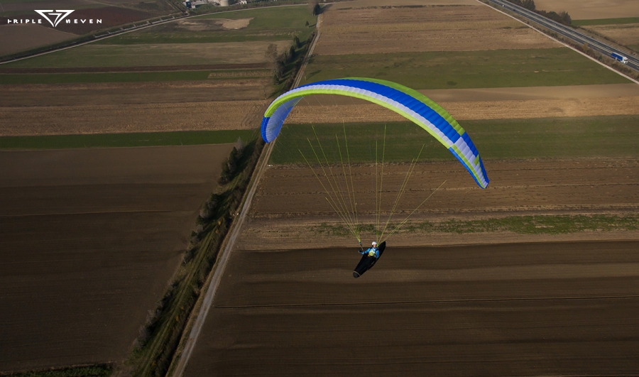 Triple Seven King jest klasycznym skrzydłem trzyrzędowym. Projektując go chcieliśmy stworzyć paralotnię, która będzie komfortowa dla szerokiej gamy pilotów latających w klasie D. Powstał bardzo gładki profil, który daje uczucie bezpieczeństwa w dużym zakresie prędkości. Handling jest precyzyjny i czuły, a kiedy trzeba można mocniej pociągnąć za sterówki, żeby np. lepiej wgryźć się w noszenie. King ma bardzo dobre osiągi, ale także dobrze sobie radzi w turbulencjach, dzięki czemu nasze loty testowe były czystą przyjemnością. Jesteśmy bardzo zadowoleni z tego skrzydła i wierzymy, że wielu pilotów doceni jego świetny feeling.