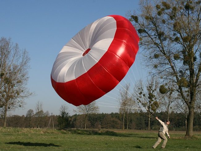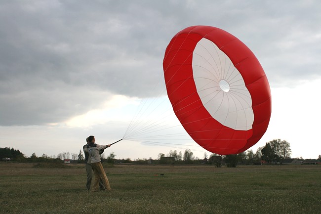 Solidny spadochron -ma bardzo stabilne opadanie .